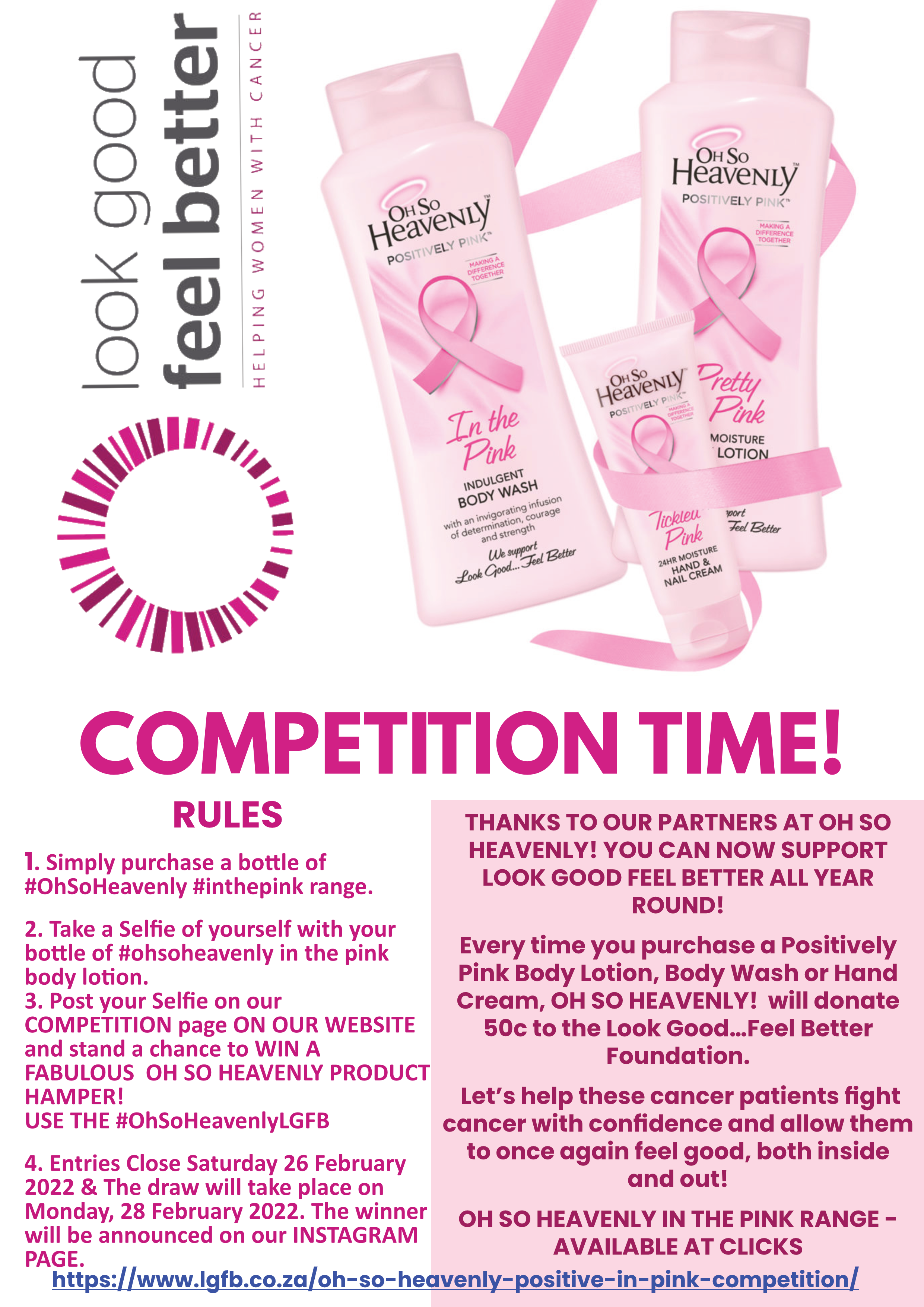 Every time you purchase a Positively Pink Body Lotion, Body Wash or Hand Cream, OH SO HEAVENLY! will donate 50c to the Look Good…Feel Better Foundation.